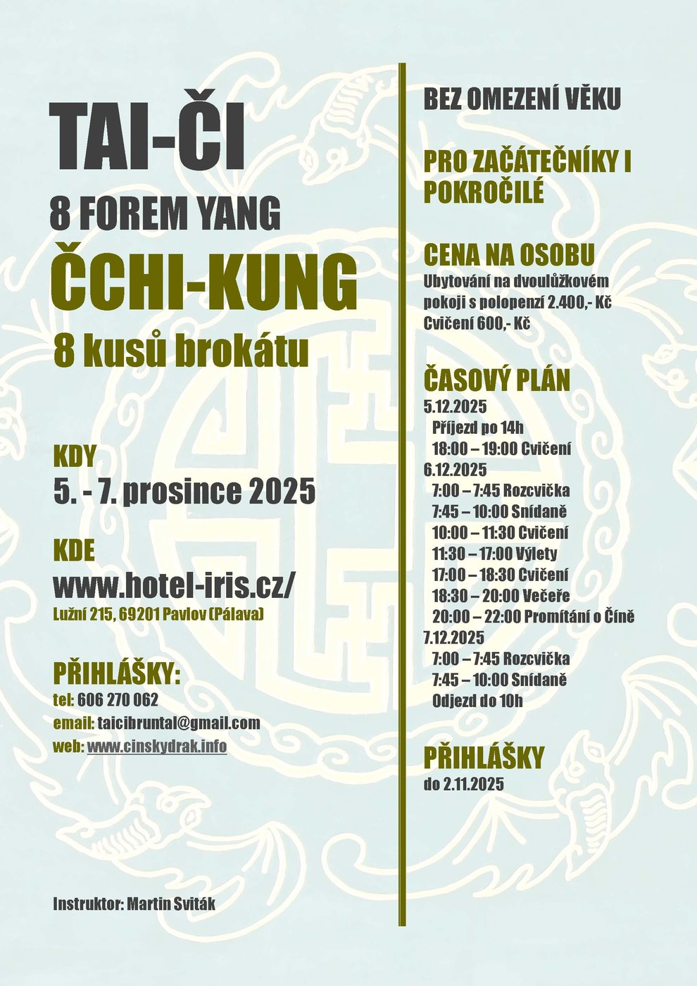 Soustředění na horách, víkendové semináře, studijní cesty do Číny, exhibice, přednášky o Tai-či a Tradiční čínské medicíně, Teambuildingové akce.