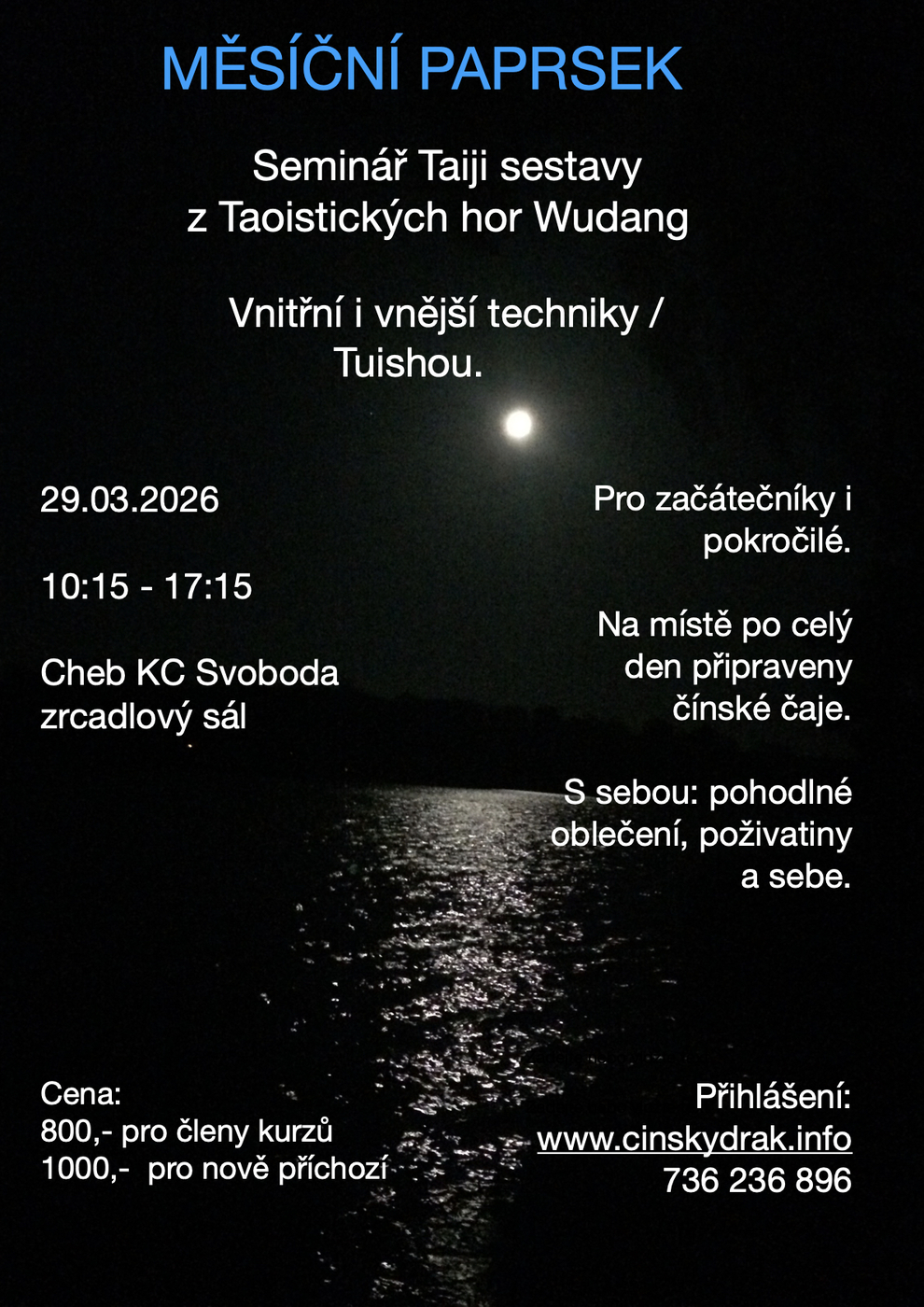 29.3. - SEMINÁŘ: Wudang, sestava "Měsíční Paprsek", vnitřní a vnější formy, Tuishou